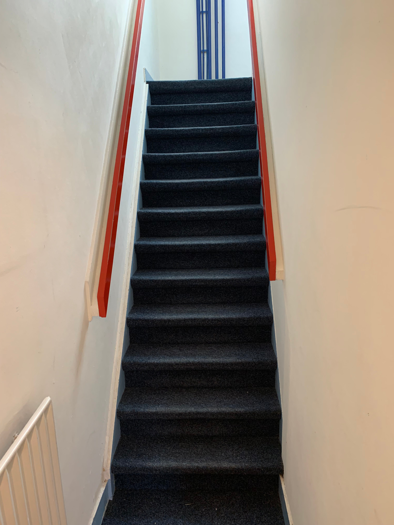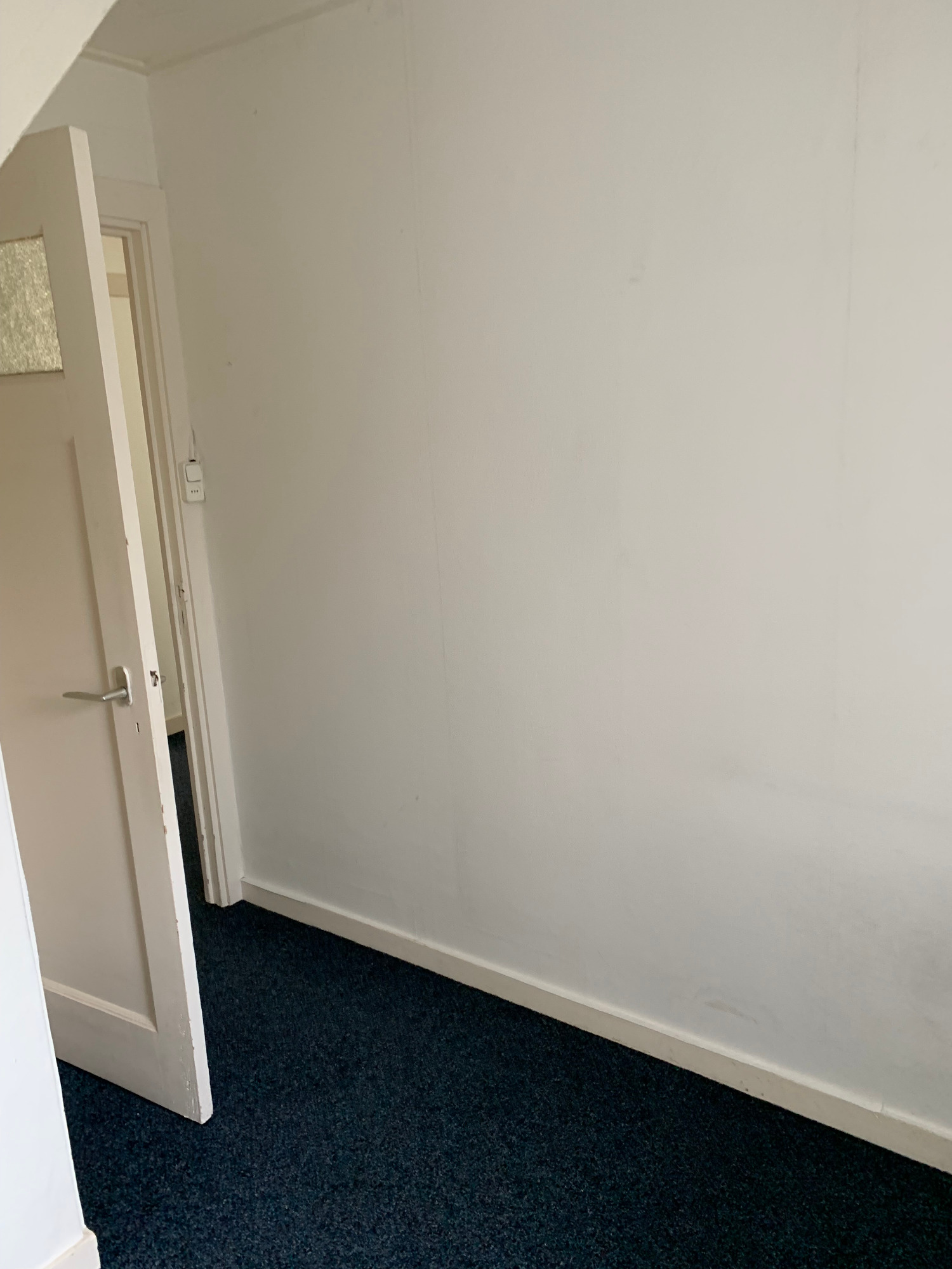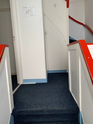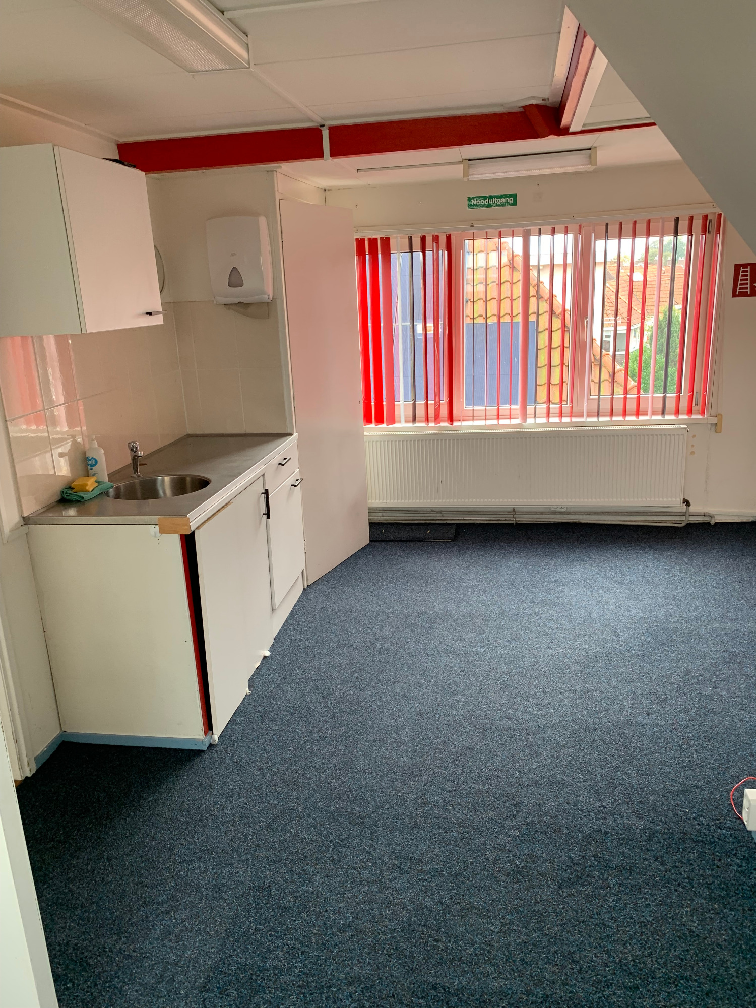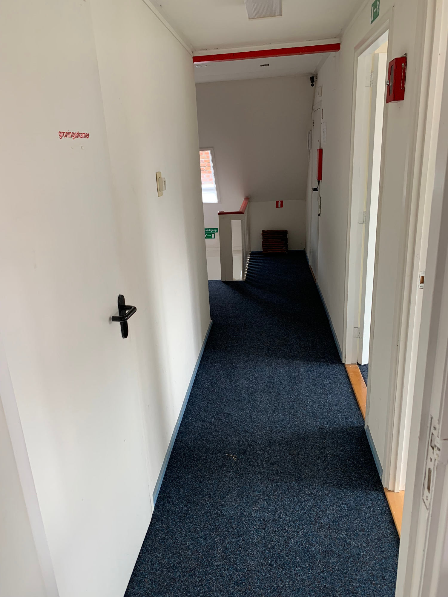 Bekijk hier de interieurfotos van het appartement, hal beneden, trap naar boven, hal boven, gang appartement, badkamer (toilet, douchem wastafel), L-vorm living met open keuken, hal naar dakterras, dakterras, trap naar tweede verdieping,, hal/gang tweede verdieping, master bedroom, middelgrote slaapkamer, twee kleine slaapkamers (berging/logeerkamer), (bijna sta-)zolder en cv's voor benedendeel en bovendeel.