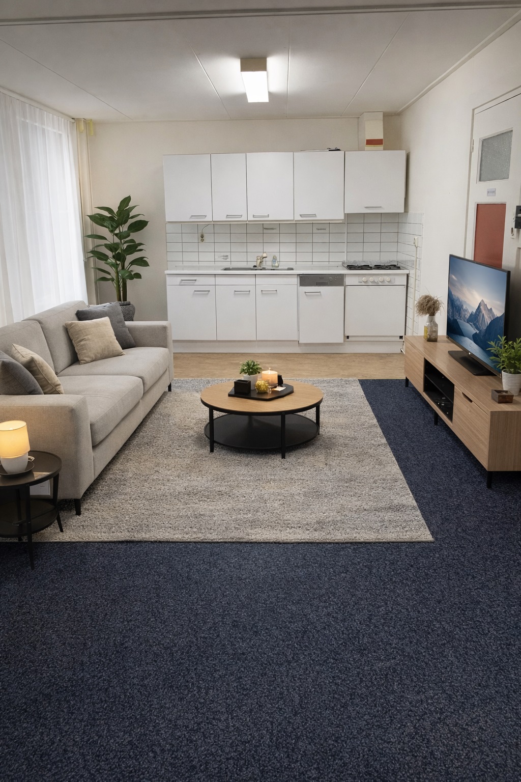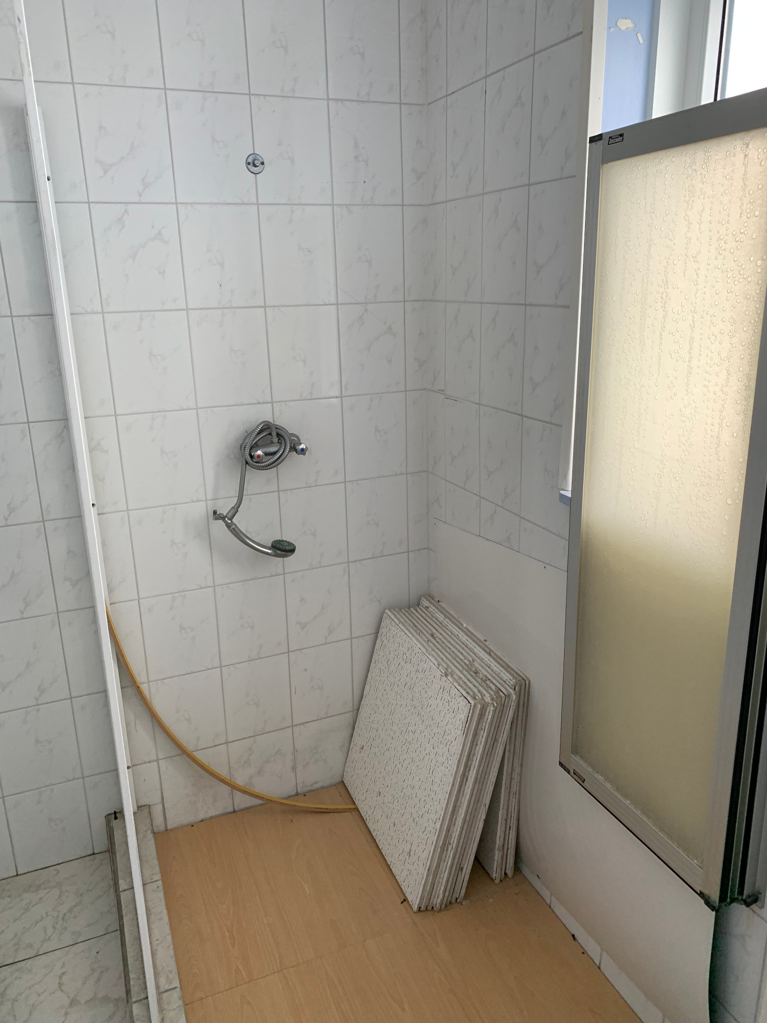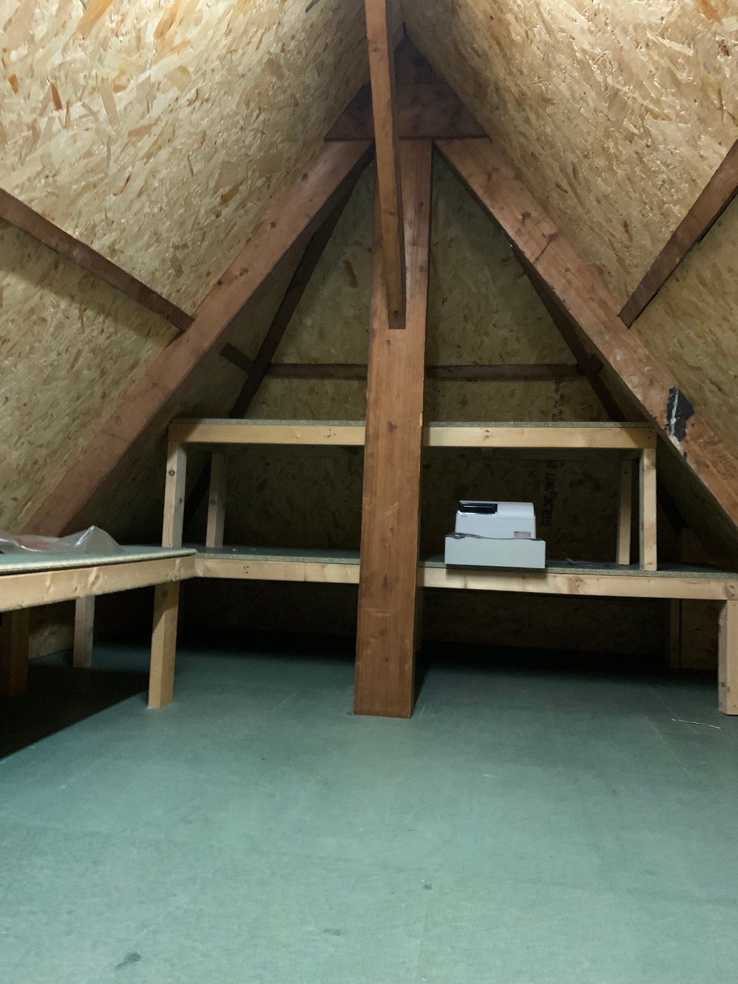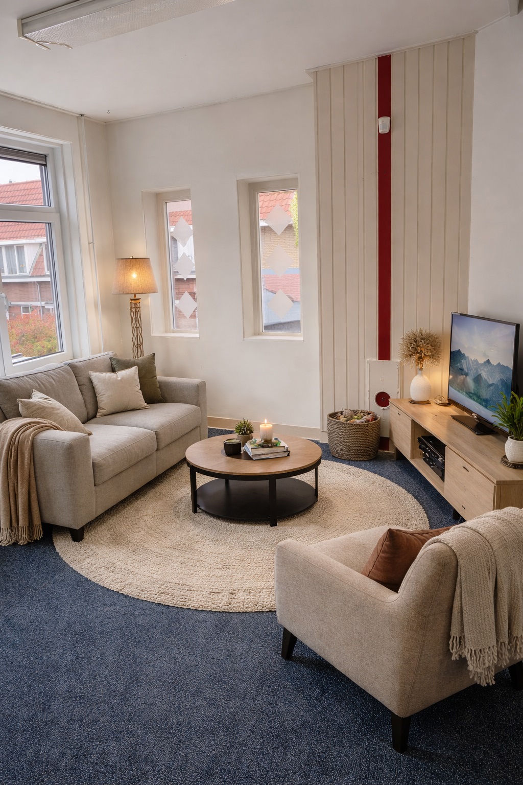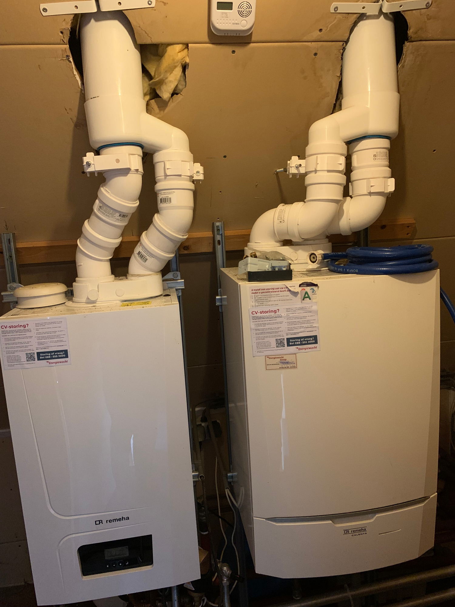 Bekijk hier de interieurfotos van het appartement, hal beneden, trap naar boven, hal boven, gang appartement, badkamer (toilet, douchem wastafel), L-vorm living met open keuken, hal naar dakterras, dakterras, trap naar tweede verdieping,, hal/gang tweede verdieping, master bedroom, middelgrote slaapkamer, twee kleine slaapkamers (berging/logeerkamer), (bijna sta-)zolder en cv's voor benedendeel en bovendeel.
